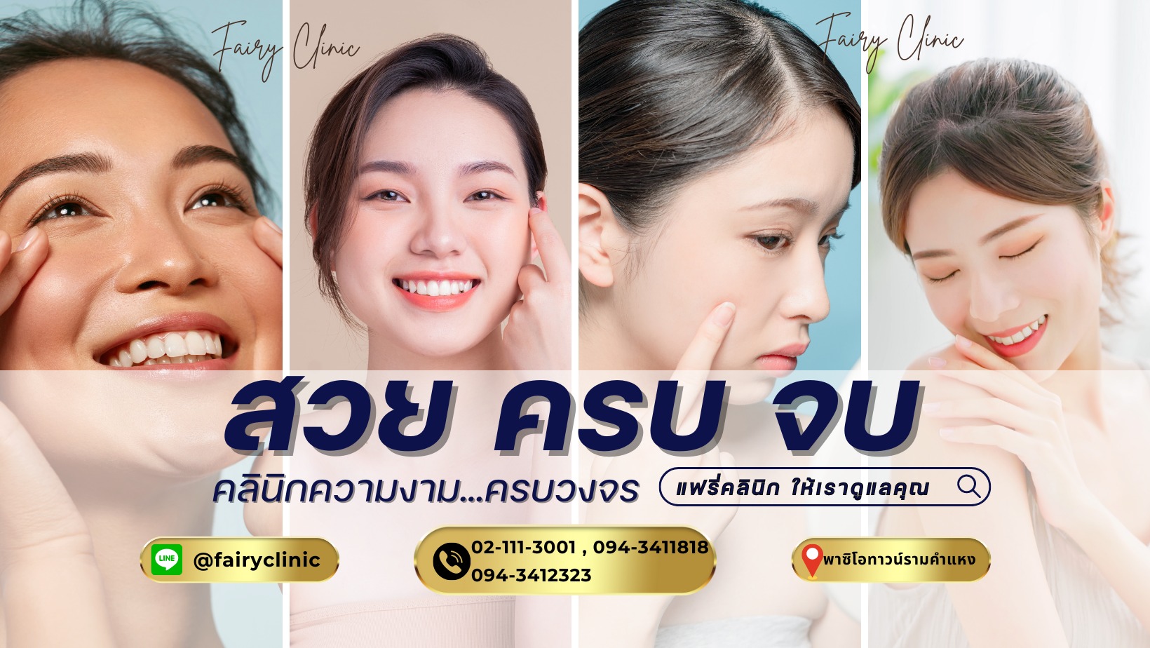 ศูนย์บริการความงาม FAIRY CLINIC แพทย์มีความเชี่ยวชาญทางด้านเวชศาสตร์ผิวพรรณและความงาม และเวชศาสตร์ชะลอวัยแบบครบวงจร เป็นผู้นำในด้านการแพทย์ชะลอวัยและ นวัตกรรมแห่งการลดเลือนจุดด่างดำ และเน้นบริการปรับโครงสร้างของใบหน้า โดยไม่ต้องผ่าตัดด้วยเทคโนโลยีทางด้านความงามทางการแพทย์ พร้อมเสริมใบหน้าให้ดูสวย และอ่อนเยาว์ได้โดยไม่ต้องผ่าตัด เช่น Botox, ร้อยไหม, Laser